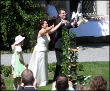 Wir beide bekamen je eine Taube in die Hand gedrückt und es war erstaunlich die